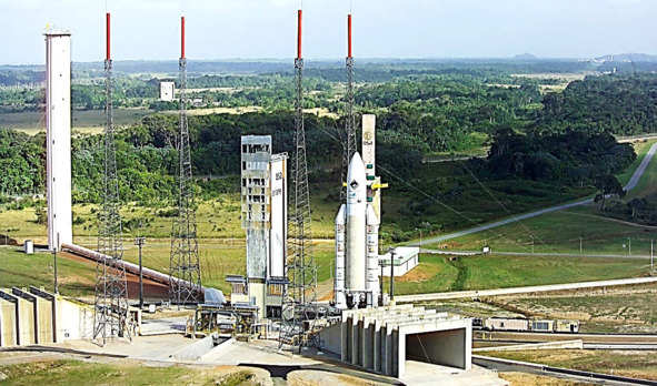 Услуги по запуску спутников на ракетах «Vega», «Союз» и «Ariane-5» с космодрома, предоставляет компания Arianespace. Космодром Куру расположен на широте 5°3», около 500 км к