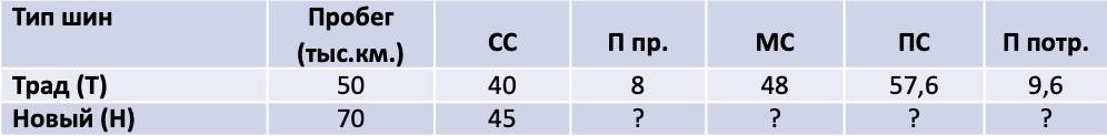 На рынке с равновесным соотношением спрос / предложение доминирует традиционный тип шин – Т с пробегом в 50 тыс. км, себестоимостью 40 ед. Исходя из норматива прибыли – 20%, его производители имеют прибыль 8 тыс. руб., потребители – 9,6 тыс. руб. Производителю шин Н необходимо определить оптимальные величины ПС, МС и Ппотр. Своей продукции на основании следующих исходных показателей: ССН – 45 ед., пробег – 70 тыс. км. Для этого уточним сначала величину Потребительной стоимости, переносимой на единицу работы, производимой комплектом шин Т: 57,6 / 50 = 1,152 руб. / км. На основании этих данных определим величины: ПСН = 1,152 * 70 = 80,64 тыс. руб. С учетом изложенных подходов диапазон величин МСН может быть определен: нижний – по формуле МСН = ССН (1 + Норма прибыли) = 45 * 1,2 = 54, верхний – по формуле МСН* = ПСН / (1 +Норма прибыли) = 80,64 / 1,2 = 67,2 ед. Соответственно, прибыль Производителя будет находиться в интервале от 9 ед. до 22,2 ед., прибыль Потребителя в диапазоне от 26,64 ед. до 13,44 ед. Принципы, которыми может руководствоваться Производитель шин Н при установлении конкретной величины МС, будут рассмотрены в последующих разделах статьи. Эксплуатация шин осуществляется в сочетании со всеми другими узлами автомобиля. Принимая во внимание, что шины Т и Н работают в равных условиях на одной марке автомобилей, при выявлении величины Потребительной стоимости шин Н мы можем абстрагироваться в расчетах от величин МС и ПС других узлов автомобилей.