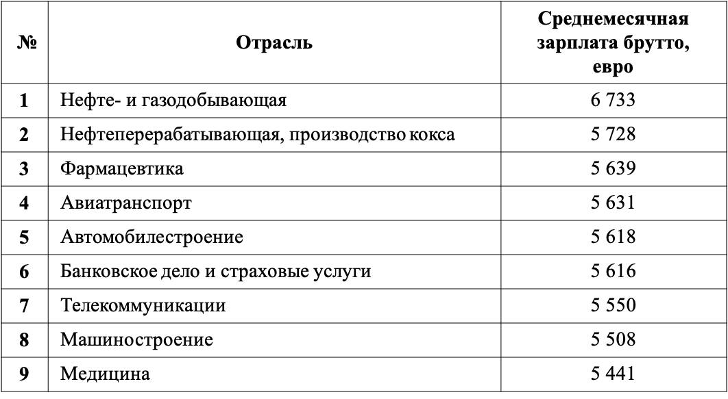 Показательно, что наиболее высокая зарплата также у работников нефтегазодобывающей отрасли Германии, на втором месте по аналогии с Россией – нефтепереработка. Но при этом зарплата в медицине ниже зарплаты лидеров всего лишь на 19,2% и 5%.