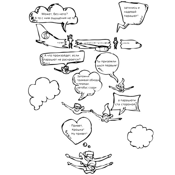– Я же видела, как улетел твой самолет. Ты не мог выпрыгнуть как Шварценеггер, – она смотрит в улыбку его глаз. – И обратно на этот рейс ты бы не успел: выйти, зарегистрироваться, пройти контроль… а они сразу улетают назад.