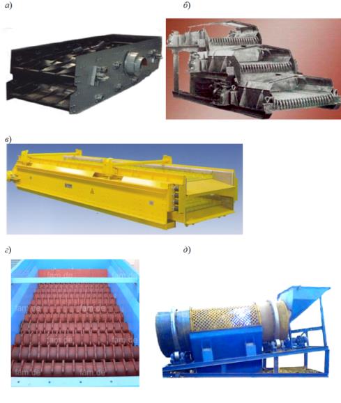 Грохоты для сухого подготовительного грохочения описаны в [21, 22], мокрого в [23, 24], гидрогрохоты – в [25].