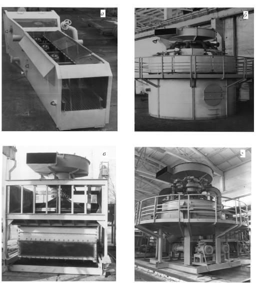Оборудование для обесшламливания мелкого машинного класса на неподвижных и подвижных ситах описаны в [26–28], вибрационных грохотах – в [24, 29, 30], багер-элеваторах – в [31], обесшламливателях – в [32].