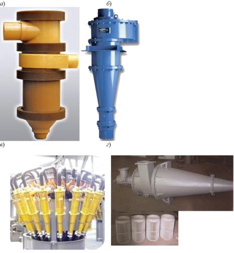 а – ГЦ; б – типа «Кребс»; в – батарейные гидроциклоны типа БГЦ;