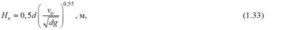 Здесь ε– коэффициент сжатия (ε≈90,0). При Hк < H закручивание жидкости в воронке приводит к уменьшению пропускной способности трубопровода и падению напора на входе в гидроциклон.