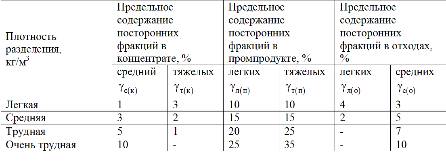Это означает, что среднее вероятное отклонение плотности посторонних фракций в продуктах обогащения от плотности разделения составляет 0,155 (или 155 кг/м3). По законам вероятности максимальное отклонение плотности посторонних фракций от плотности разделения составляет