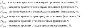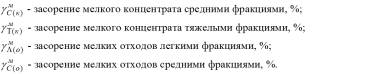 Выход посторонних фракций рассчитывается в процентах от соответствующего продукта. Увеличение содержания посторонних фракций в фактически получаемых продуктах обогащения свидетельствует об ухудшении процесса обогащения, вызываемом рядом причин.