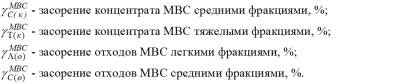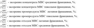 Выход и зольность отходов МВС определяется по материальному и зольному балансам машинного класса крупностью 0,5–1 мм