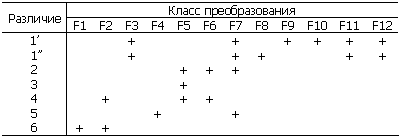 С помощью этих преобразований можно устранять различия между ƒ1 и ƒ2, которые мы перечислили выше. Укажем в специальной табл. 4 классы преобразований F1, которые можно использовать для устранения различий. Первое различие разделено на два: различие 1’ требует добавления выражений в формулу, а различие 1’’ – вычеркивания из формулы лишних выражений.