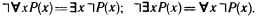 Справедливость их вытекает из смысла кванторов. Они позволяют любую формулу в исчислении предикатов представить в виде предваренной нормальной формы (ПНФ). В ней сначала выписываются все кванторы, а затем предикатные выражения. Например, формула