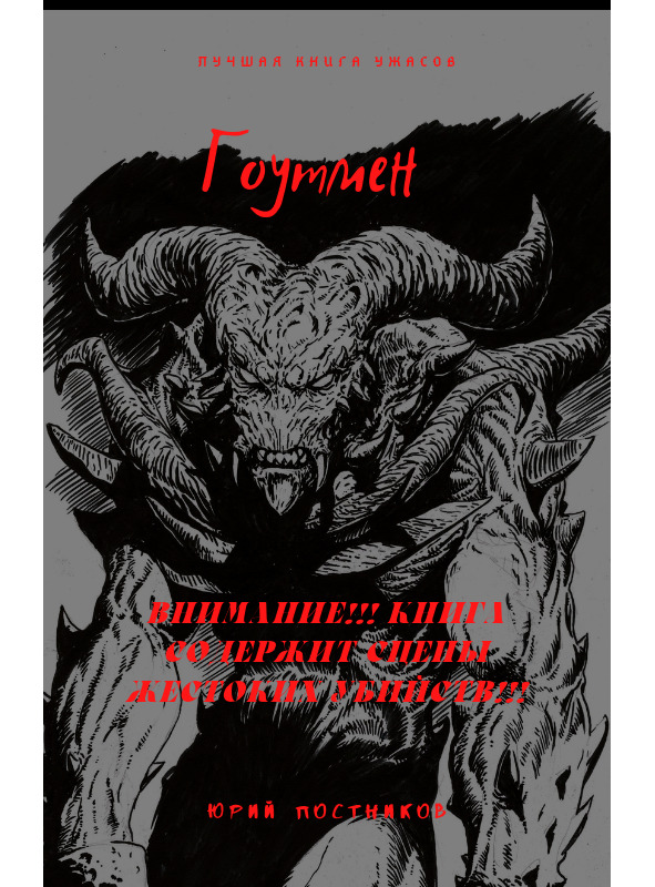 Но, если у Вас крепкая психика, Вам нравятся ужасы и много крови, тогда прошу вашему вниманию мою книгу «Гоутмен». При написании этой книги, я руководствовался не только своей фантазией, но и различными легендами, прибывших к нам из США. Надеюсь, что Вам понравится данная книга, и Вы оставите положительный отзыв в том магазине, где её купили.
