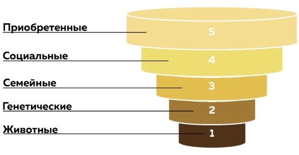 Генетические____________________________________________________Семейные____________________________________________________Социальные____________________________________________________Приобретённые самостоятельно____________________________________________________