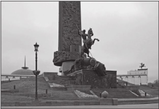 Вместо горы перед нами простиралась плоская равнина с редкими рядами недавно посаженных худосочных деревьев – парк Победы. Широкие ступени вели к большой круглой площади, плотно одетой в бетон, камень и асфальт. В центре высилась трехгранная стела-штык. К ее верхней части бабочкой была прикреплена крылатая скульптура древнегреческой богини победы Ники, с ног которой свисали плохо различимые издали пухлощекие ангелы.