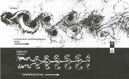 Кто-то сказал: «Красота – это целесообразность». Исследованиям вихревой «дорожки Кармана» посвящена масса работ и публикаций, в том числе и автора. На мой взгляд, одна из самых впечатляющих картинок приведена на Рис. 3-8а, 3-8б.