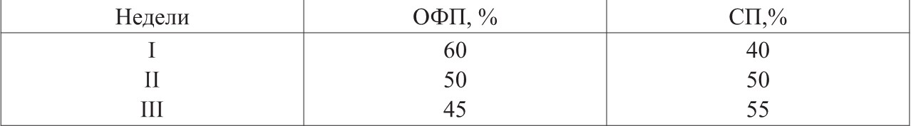 Соотношение средств общефизической подготовки и специальной подготовки по микроциклам