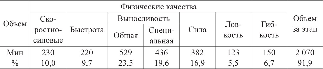 Распределение объема тренировочных средств на общеподготовительном этапе