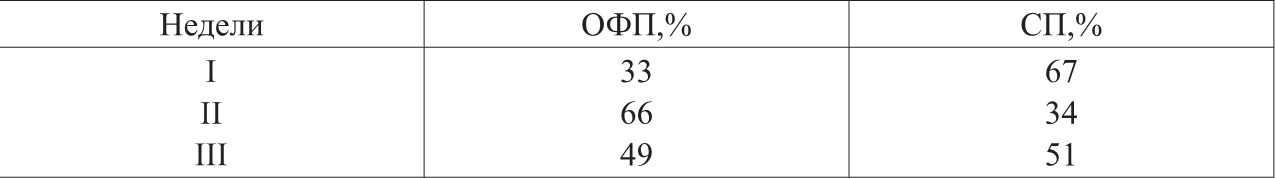 Постоянный учет и анализ тренировочных нагрузок на сборе позволили выявить соотношения средств общефизической подготовки и специальной подготовки по неделям этапа, отраженные в табл. 10.