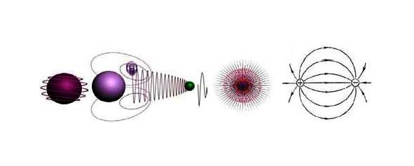 Законы вихревых полей существенно с точностью наоборот отличаются от полей стационарных источников. Так, например, противоположные полюса стационарного магнита притягиваются друг к другу, а одинаковые отталкиваются. У вихревых полей всё наоборот. Так, например, если из космоса со спутника наблюдать три близко расположенных торнадо одного направления вращения, то рано или поздно они объединяются-сливаются в один. То же самое происходит при ускорении заряженных частиц в ускорителях, у которых с ростом кинетической энергии растёт , а их энергии в форме безмассовых . постоянного не масса заряд ГЭММ магнитных монополей