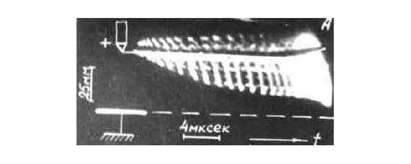 – далее этот магнитный заряд, разряжаясь в режиме самодвижения, строит волновод трека (фото 2.2) движения фотона – микровихрон квантует зёрна-потенциалы геометрически фиксированные в пространстве, при этом заряд монополя уменьшается от максимального до минимального, 126