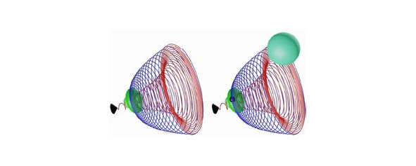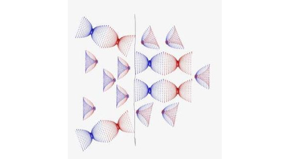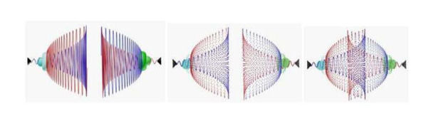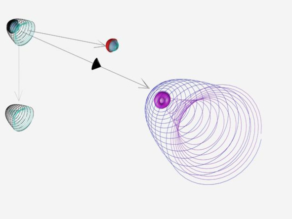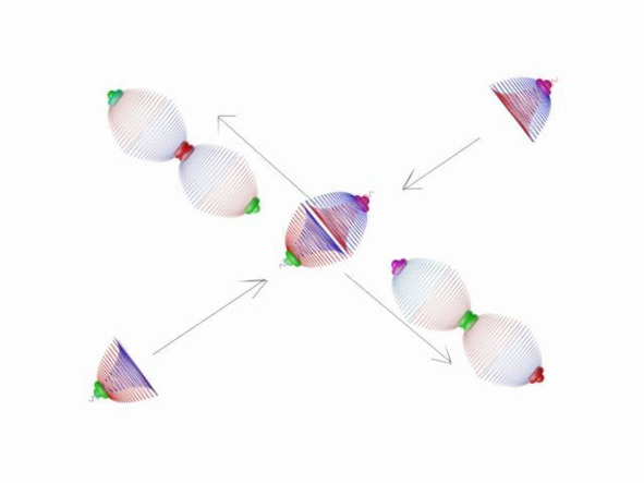 Фото 2.19. Столкновение полей-микропространств лептонов и бозонов в плоскости чёрной линии.