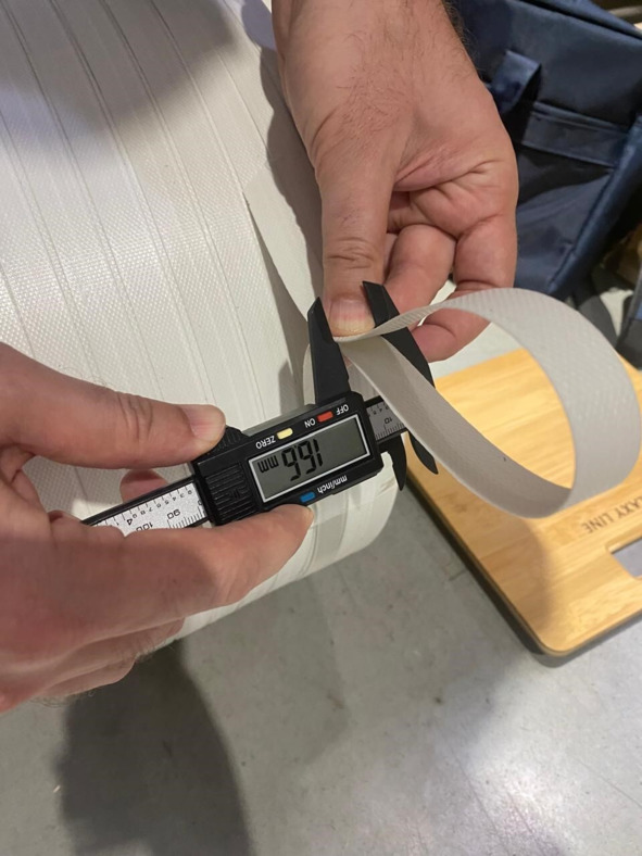 Существует и более «сподручный» метод определения разрывной нагрузки, т.к. далеко не на каждом производстве имеется разрывная машина. Заключается метод в использовании аккумуляторного инструмента с регулируемой силой натяжения. Пробуя делать обвязки на различных настройках, можно зафиксировать на каком этапе инструмент порвёт ленту. Но важно понимать, что точность при таком замере может сильно варьироваться (в зависимости от шага настройки силы натяжения инструмента).