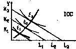 С изменением дохода бюджетная кривая смещается параллельно. Можно построить кривую ICC – проходящую по точкам оптимума потребителя для различных уровней дохода (см. рис. выше)