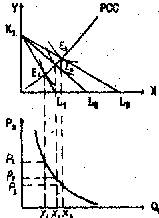 С изменением цены на один или оба товара бюджетная кривая изменяет наклон. Точки оптимума лягут на кривую PCC. Ниже расположена кривая спроса для товара Х.