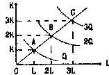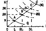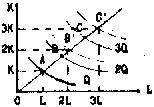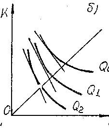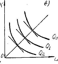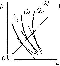 Если в результате выпуск увеличится также в k раз (Q1 = kQ0), то имеет место постоянная отдача от масштаба. (0A = AB = AC)
