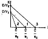 Если w – цена услуг труда (ставка заработной платы), r – цена услуг капитала (ставка процента), то располагая определенным бюджетом С, производитель может купить К единиц капитала и L единиц труда: