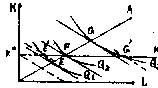 Функция затрат характеризует общий уровень затрат на производство определенного объема продукции при условии, что предприятие использует оптимальные комбинации ресурсов К и L. Последние определяются касанием изокванты, соответствующей данному выпуску, и изокосты.