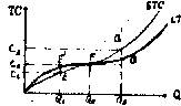 Полагая цены ресурсов г и w неизменными, можно представить функцию затрат графически, как кривую затрат. (STC – краткосрочные, LTC – долгосрочные)