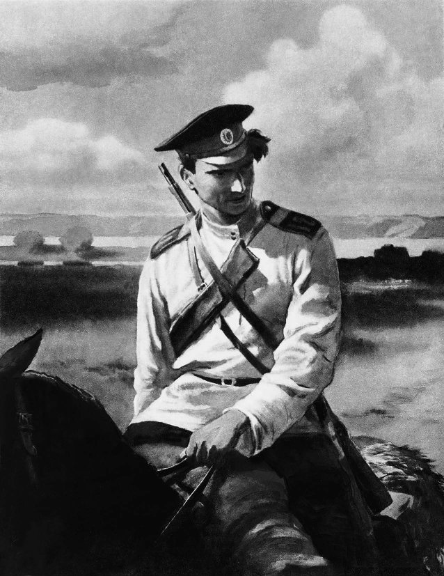 Григорий не спеша стреляет, целится тщательно и между двумя выстрелами, прислушиваясь к команде взводного, выкрикивающего прицел, успевает осторожно ссадить выползшую на рукав его гимнастерки рябую божью коровку. Потом атака… Григорий окованным прикладом валит с ног высокого немецкого лейтенанта, берет в плен трех немецких солдат и, стреляя над их головами вверх, заставляет их рысью бежать к речке.