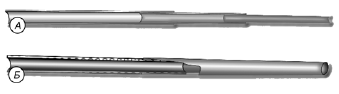 При выборе удилища одной из важнейших характеристик, на которые обращает внимание рыболов, является его длина, определяющая в ряде случаев возможность ловли в каких-то конкретных водоемах. В старых дореволюционных изданиях по рыбной ловле при описании удилищ можно обнаружить такую фразу, что длинное цельное удилище (имеется в виду бланк, не разрезанный поперек) по своим характеристикам, несомненно, лучше составного. Но длинные удилища, которые в отдельных способах ловли достигают чуть ли не 20 м, изначально не могут быть цельными. Поэтому именно в целях удобства транспортировки их изготавливают складными, состоящими из какого-то количества колен (если исключить маленькие одноколенные спиннинги, которые несут все присущие им признаки ширпотреба). Колена (отрезки) бланка соединяются двумя способами, по которым все удилища подразделяются на две категории: телескопические удилища, или так называемые телескопы (рис. 35, а), и штекерные (составные) удилища (рис. 35, б).