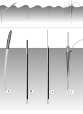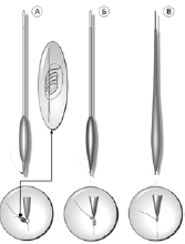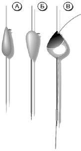 Во втором случае (рис. 40, б) показан вариант глухой оснастки с использованием дробинок, а в третьем (рис. 40, в) – вариант жесткой фиксации с помощью кембрика.