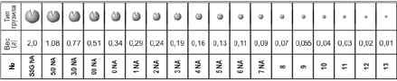 Таблица 2. Классификация круглых грузил «дробинка»
