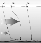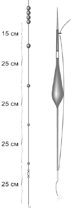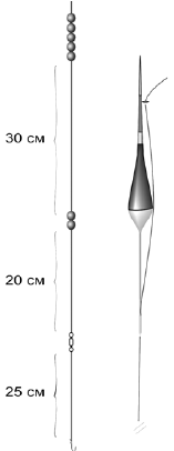 Рис. 48. Оснастка для ловли на течении на участках со средней глубиной
