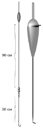 Рис. 45. Оснастка для ловли в медленно текущей воде
