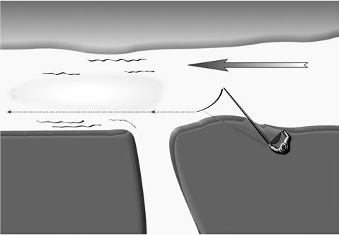 Рис. 2. Облавливается отмель ниже устья впадающего ручья или маленькой речки