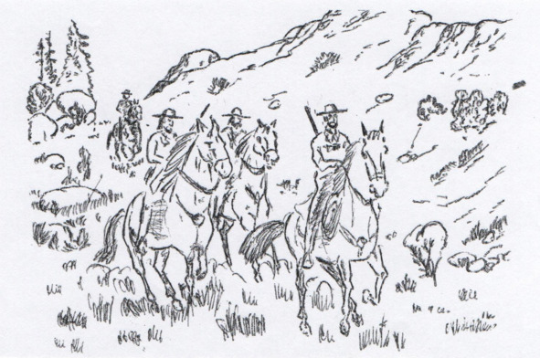 Отряд всадников двигался по нижней террасе, параллельно движению беглецов.