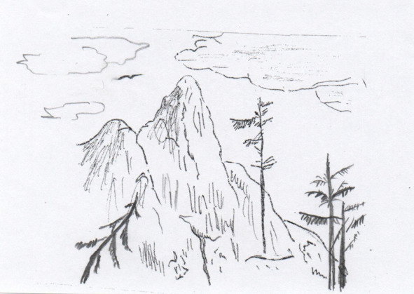 День клонился к вечеру. Лучи заходящего солнца играли на зелени. Ветер небрежно шевелил листву. Юркий рыжий бурундук шмыгнул в траву. Пара журавлей не спеша пересекала начинающее тускнеть небо.