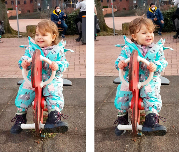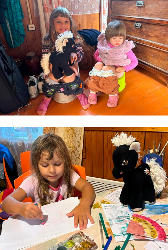 Тогда мама сказала: «Знаешь что, пойдем к лошадкам? Собачку можно только погладить, а лошадку можно и погладить, и можно на ней покататься». Я согласилась, и вот я, как видите, сижу на лошадке верхом и катаюсь на ней взад и вперёд. А что она ненастоящая, я даже не заметила, потому что ещё не понимаю разницу между настоящим и ненастоящим. Должна вам честно сказать: гладить собачку приятно, но кататься на лошадке приятнее.