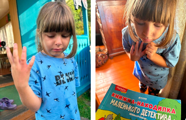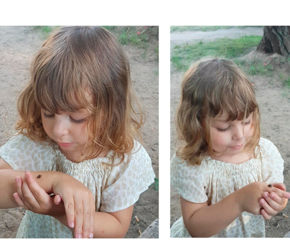 Я очень люблю букашечек, особенно божьих коровок. Когда я вижу букашечку на земле или в траве, я приседаю на корточки и долго разглядываю её и глажу пальчиком. Я никогда не убиваю букашечек, а комаров прихлопываю безжалостно, потому что они больно кусаются, а потом это место долго чешется.