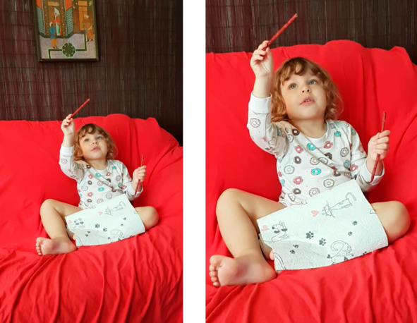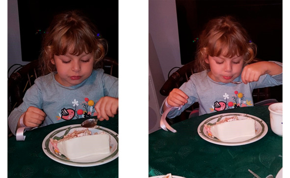 Тогда я стала колотить его палочками по голове. Но папа сказал: «Хватит баловаться, давай кушать». «Палочками?» – спросила я. «Нет, ложечкой и вилочкой». Кушать ложечкой и вилочкой у меня получилось хорошо, и скоро я так накушалась, что больше не хотела. «Я устала кушать, – сказала я, – больше не могу». И стала барабанить палочками по столу. Но папа у меня их отобрал и спрятал. Мне стало скучно, и я заснула.