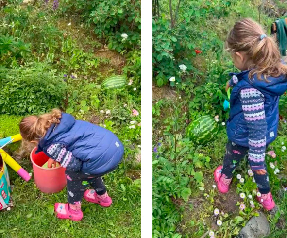 Дядя Митя сказал, что арбуз надо хорошо поливать из лейки, чтобы он опять не превратился в семечко.