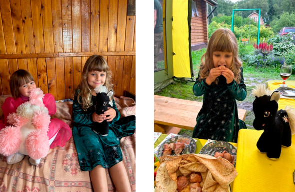 Кроме тортика для меня был ещё один сюрприз: папа усадил моих любимых зверушек и куколок на стол, и они хором спели для меня «Happy birthday». Как у него это получилось, я не знаю, но спели они замечательно. Скоро у меня опять будет день рождения – четвёртый по счету, и, кажется, опять будет тортик. Обязательно покажу вам фотографию!
