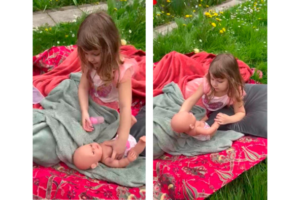 Смотрите, какой замечательный у меня сынок! Мама купила его мне в магазине игрушек. Теперь у меня есть дочка Лиля и сыночек, братик для неё.