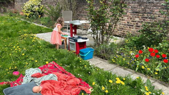 Но что делать с раскрытым зонтиком, если нет дождя? Я решила спрятаться под зонтиком от дедушки. Так я и сделала, и крикнула: «Дедушка, ищи меня!».