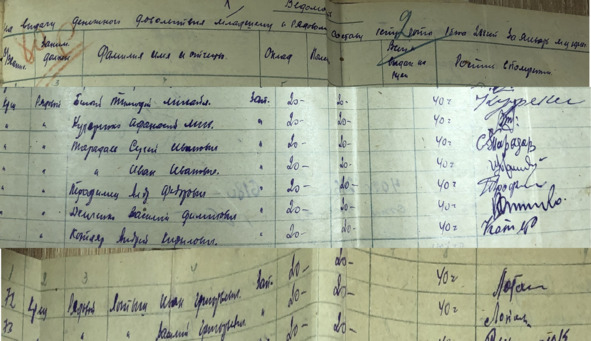 В деле №7 «Ведомости на выдачу денежного содержания военнослужащим» есть списки подразделений полка. В «Ведомости на выдачу денежного довольствия младшему и рядовому составу 1 стрелковой роты 1 стрелкового батальона за январь 1942 года» значатся Тарадаев Сергей Иванович и Тарадаев Иван Иванович.