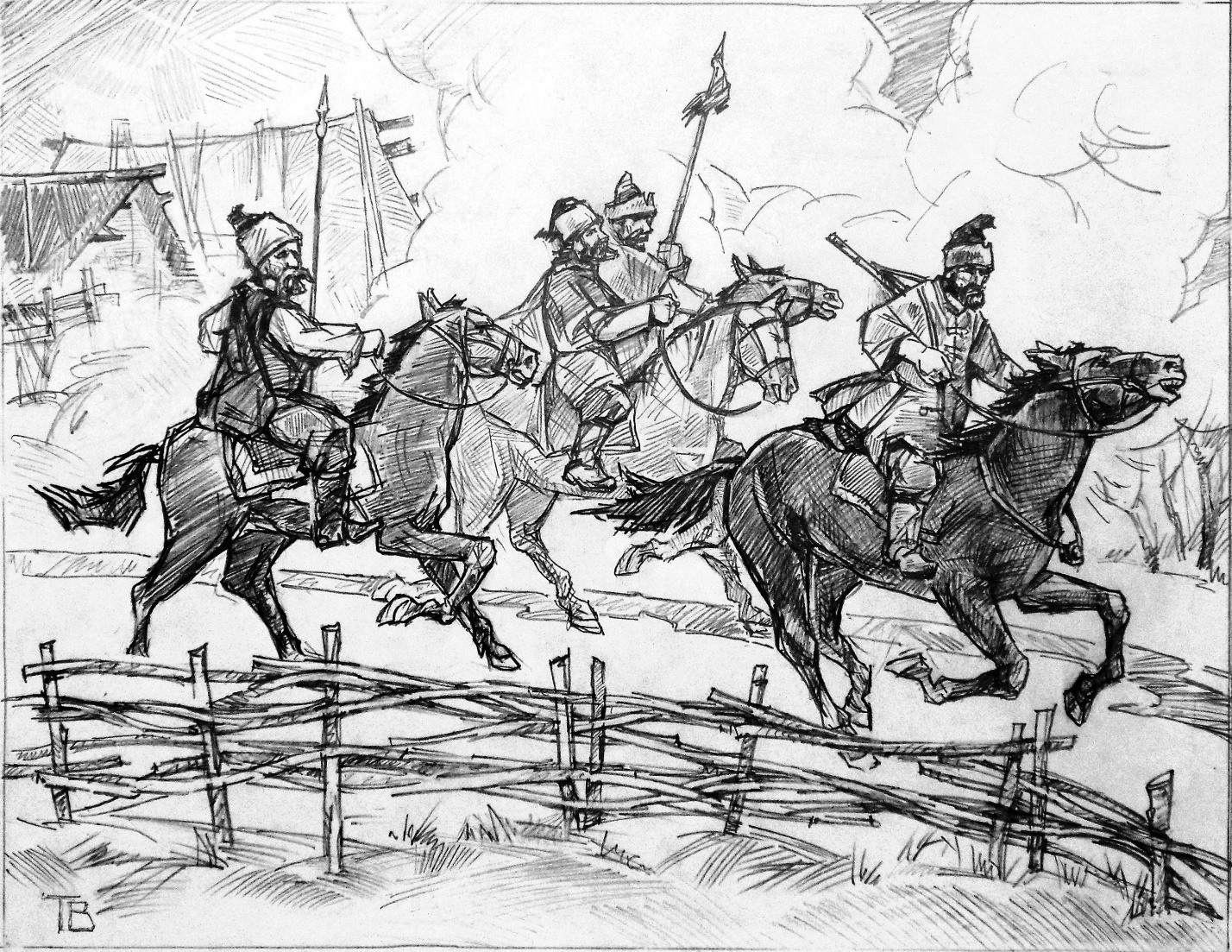 – Держи, Фрол! Эй, Петра-казак, выходи с атаманом в схватку!