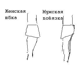 У женщин платья или юбки должны быть по типу Женской юбки, а не по типу Мужской повязки (или Килта).