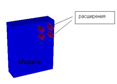 Модель состоит из тела модели и расширений, т.е. устройств, дающих дополнительные возможности системе. Впоследствии, при замене (усовершенствовании) тела модели, они становятся частью модели и появляется место для новых расширений.